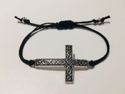 Wooden bracelet with cross & handstamped sterling silver letter charm